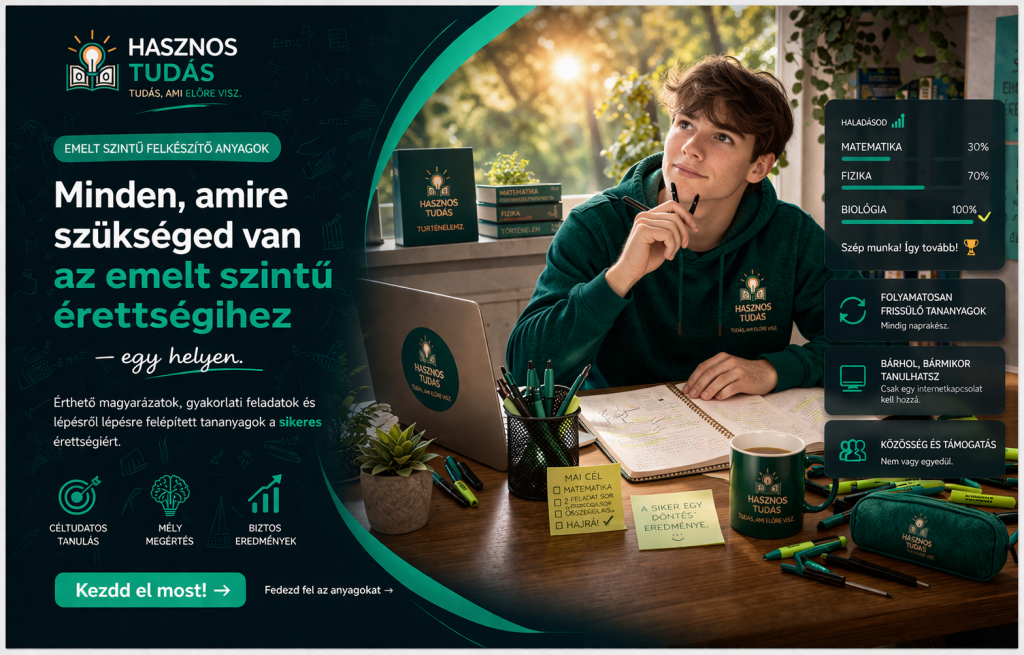 Köszöntjük a hasznostudas.com-on! Segítünk eligazodni a komplex adatok világában: készüljön fel az érettségire, tervezze meg pénzügyeit kalkulátorainkkal, vagy használja gyorskeresőinket.